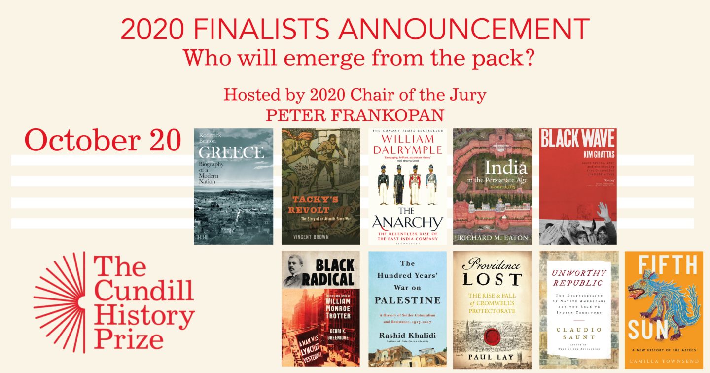 Join us on your favourite social media platform — Twitter, Instagram, Facebook or YouTube — as Peter Frankopan, Chair of the Jury, takes the reins of the Cundill History Prize's channels to announce the three finalists of the 2020 Cundill History Prize. Looking back on this year’s extended shortlist, giving a taste of what jury deliberations were like in this unprecedented year, and, of course, naming and commending the finalist authors, Peter’s special presentation is not to be missed.